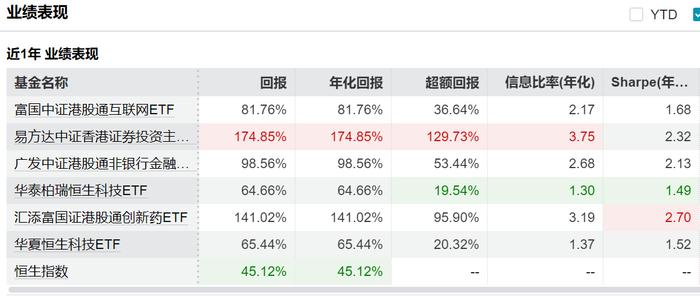 从收益角度来看,易方达中证香港证券投资主题ETF(513090)和汇添富国证港股通创新药ETF(159570)的表现较为突出。易方达中证香港证券投资主题ETF的回报高达174.85%,年化回报同样优秀,同时其信息比率和Sortino比率也较高,显示出较强的收益获取能力。