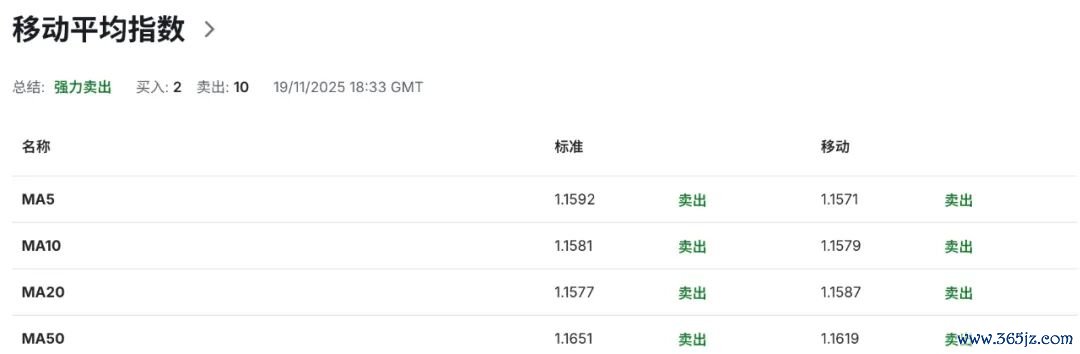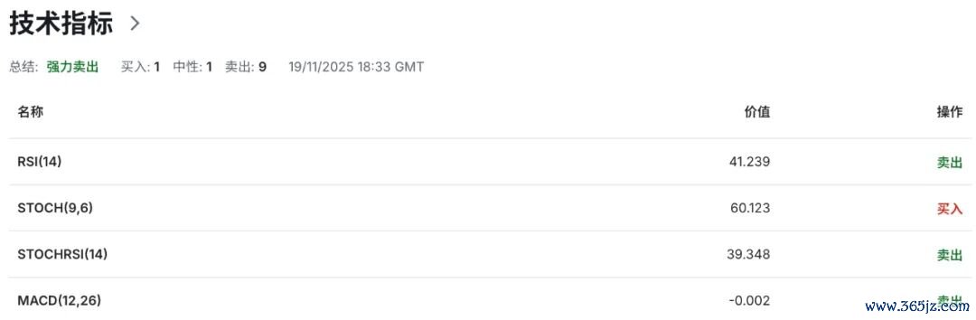 布林带上轨当前位于1.1675附近区域构成欧元短期价格走势动态阻力,布林带中轨位于1.1575区域,为欧元短期价格走势提供多空力量以及强弱格局核心分化枢纽。MACD动能指标双线维持零轴下方,DIFF-0.0015,DEA-0.0026,柱状图位于负值区间较此前有所收缩,提示空头动能呈现边际化放缓效应,但DEA扔高于DIFF值,显示短期下行动能仍然保持相对充沛,尚未构成趋势级别技术性反转信号。叠加KDJ指标也均暗示空头动能在周期性格局上依然占优,验证其短期下行风险尚存的技术有效性。若后续柱状图维持负值缩窄并出现零轴上方的回测,才将有望触发真实技术性以及趋势级别反弹的概率。