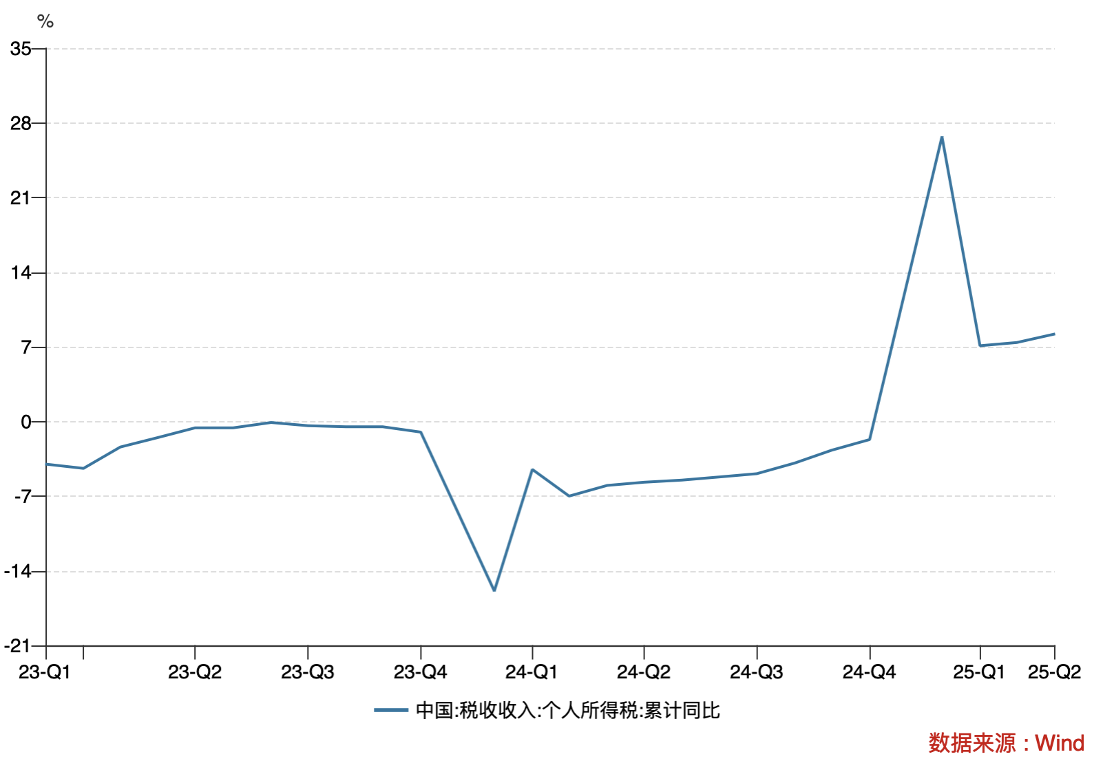 (图:2025年个税收入实现稳定增长,告别2022、2023年负增长态势,数据来源:财政部,wind)
